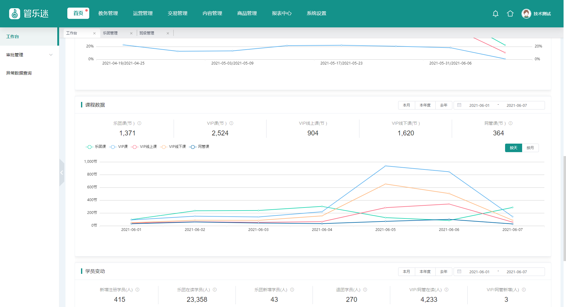 该界面用于展示管乐迷系统相关数据